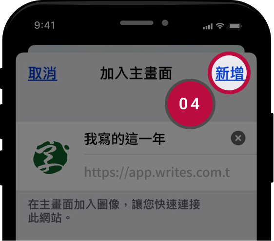 點選 [新增] 安裝至手機主畫面